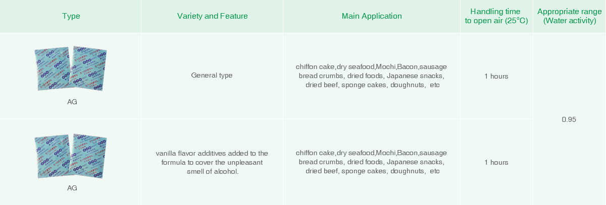 01 Due to the characteristics of volatilization,alcohol volatiles pack suits the demand of inhibiting bacterial growth on the surface of the food and would not performing well to inhibit yeast and bacterial that within the food.